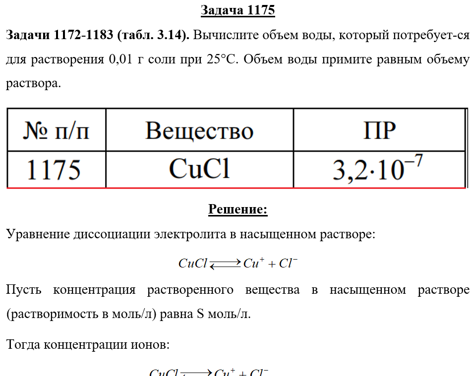Задача 1175 - Вычислите объем воды, который потребуется для растворения 0,01 г соли при 25°С. Объем воды примите равным объему раствора.