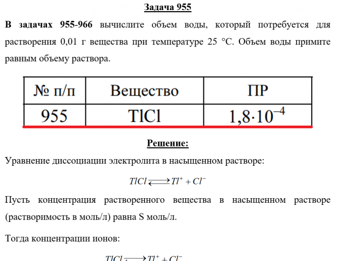 Задача 955 - вычислите объем воды, который потребуется для растворения 0,01 г вещества при температуре 25 °С. Объем воды примите равным объему раствора.