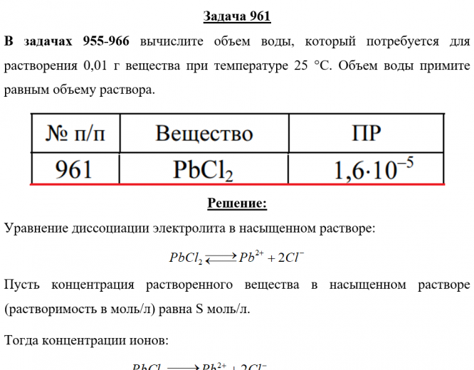 Задача 961 - вычислите объем воды, который потребуется для растворения 0,01 г вещества при температуре 25 °С. Объем воды примите равным объему раствора.