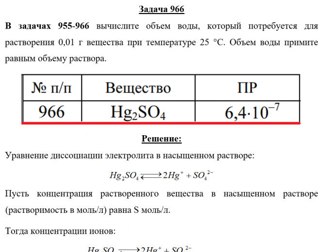 Задача 966 - вычислите объем воды, который потребуется для растворения 0,01 г вещества при температуре 25 °С. Объем воды примите равным объему раствора.