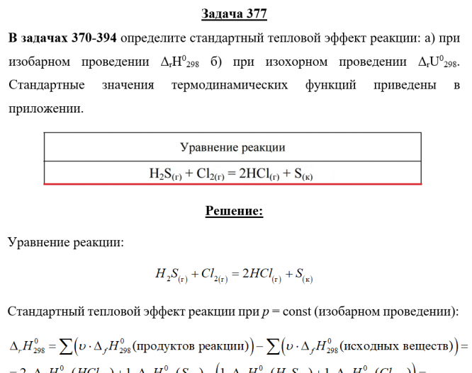 Задача 377 - определите стандартный тепловой эффект реакции: а) при изобарном проведении ΔrH0298 б) при изохорном проведении ΔrU0298. Стандартные значения термодинамических функций приведены в приложении.