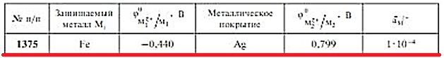 Задачи 1375-1386 (табл. 3.29). Рассчитайте ЭДС коррозионного элемента, работающего в нейтральной аэрированной среде при нарушении сплошности защитного покрытия (при известной относительной активности ионов корродирующего металла аМz+/М). Приведите уравнения электродных процессов. Укажите тип покрытия.