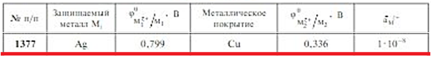 Задачи 1375-1386 (табл. 3.29). Рассчитайте ЭДС коррозионного элемента, работающего в нейтральной аэрированной среде при нарушении сплошности защитного покрытия (при известной относительной активности ионов корродирующего металла аМz+/М). Приведите уравнения электродных процессов. Укажите тип покрытия..