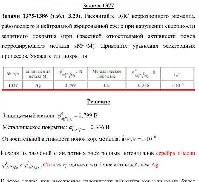 Для студентов по предмету ХимияЗадача 1377 - Рассчитайте ЭДС коррозионного элемента, работающего в нейтральной аэрированной среде при нарушении сплошности защитного покрытия (при изЗадача 1377 - Рассчитайте ЭДС коррозионного элемента, работающего в нейтральной аэрированной среде при нарушении сплошности защитного покрытия (при из