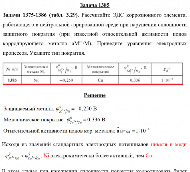 Для студентов по предмету ХимияЗадача 1385- Рассчитайте ЭДС коррозионного элемента, работающего в нейтральной аэрированной среде при нарушении сплошности защитного покрытия (при извЗадача 1385- Рассчитайте ЭДС коррозионного элемента, работающего в нейтральной аэрированной среде при нарушении сплошности защитного покрытия (при изв