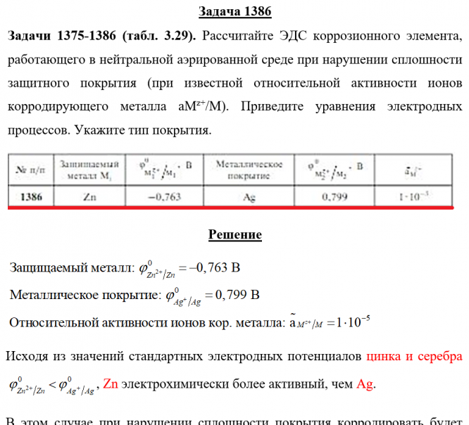 Для студентов по предмету ХимияЗадача 1386- Рассчитайте ЭДС коррозионного элемента, работающего в нейтральной аэрированной среде при нарушении сплошности защитного покрытия (при извЗадача 1386- Рассчитайте ЭДС коррозионного элемента, работающего в нейтральной аэрированной среде при нарушении сплошности защитного покрытия (при изв