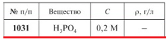 Задачи 1023-1034 (табл. 3.2). Определите массу растворенного вещества в 1 л водного раствора известной концентрации С и плотности ρ.Примечание. Концентрация может быть выражена массовой долей (%), молярной концентрацией (М) или молярной концентрацией эквивалентов (н).