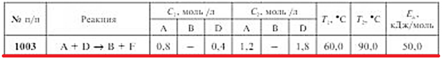 Задачи 1001-1010 (табл. 2.20). Рассчитайте, во сколько раз изменится скорость элементарной газофазной реакции при одновременном изменении начальной концентрации реагентов от C1 до C2 и температуры от Т1 до Т2 при известном значении энергии активации Ea.