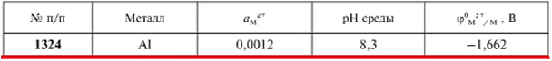 Задача 1324 - Расчетом ЭДС коррозионного элемента Е и энергии Гиббса ΔrG коррозионного процесса определите возможность коррозии металла во влажной деаэрированной среде при данных значениях водородного показателя рН и относительной активности ионов ме