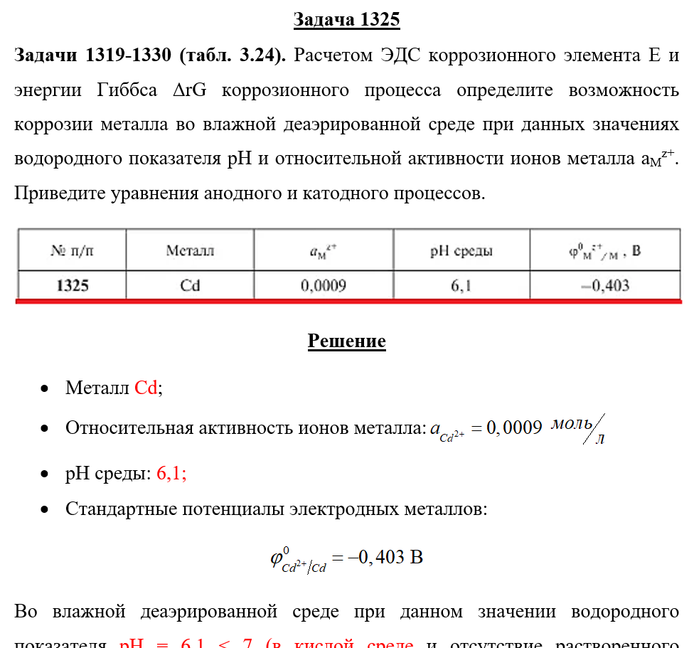 Для студентов по предмету ХимияЗадача 1325 - Расчетом ЭДС коррозионного элемента Е и энергии Гиббса ΔrG коррозионного процесса определите возможность коррозии металла во влажной деаЗадача 1325 - Расчетом ЭДС коррозионного элемента Е и энергии Гиббса ΔrG коррозионного процесса определите возможность коррозии металла во влажной деа