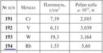 Задачи 191-210 (табл. 1.13). Определите, используя приведенные ниже экспериментальные данные: а) структурный тип кристаллической решетки, в которой кристаллизуется данный металл (гранецентрированная кубическая, объемно центрированная кубическая или типа алмаза); б) рассчитайте эффективный радиус атома металла; в) изобразите элементарную ячейку, укажите координационное число; г) напишите электронную формулу атома и укажите, обладают ли атомы парамагнитными свойствами.