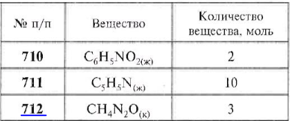 Задача 712: Вычислите количество теплоты, выделяющееся при полном сгорании указанного количества вещества.