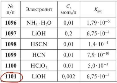 Задача 1101: Вычислите концентрации ионов, на которые диссоциирует слабый электролит в водном растворе.