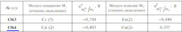 Задачи 1363-1374 (табл. 3.28). Приведите уравнения анодного и катодного процессов, протекающих при нарушении сплошности покрытия на изделии в условиях коррозии в морской воде (рН = 8, аэрированная среда) и коррозии в кислотных почвах (рН = 3…5,5, деаэрированная среда). Укажите тип металлического покрытия (анодное, катодное) и механизм его защитного действия (механическая, электрохимическая защита).