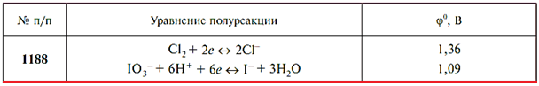 Задача 1188 - По приведенным уравнениям полуреакций и значениям стандартных электродных потенциалов составьте полное ионно-молекулярное уравнение окислительно-восстановительной реакции, самопроизвольно протекающей в редоксэлементе. Рассчитайте ЭДС эл
