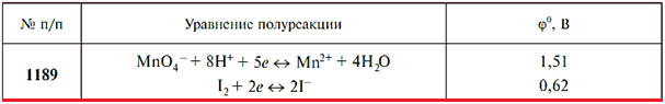 Задача 1189 - По приведенным уравнениям полуреакций и значениям стандартных электродных потенциалов составьте полное ионно-молекулярное уравнение окислительно-восстановительной реакции, самопроизвольно протекающей в редоксэлементе. Рассчитайте ЭДС эл