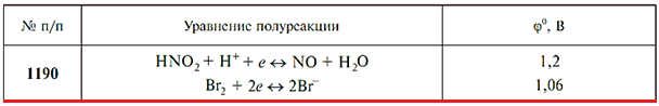 Задача 1190 - По приведенным уравнениям полуреакций и значениям стандартных электродных потенциалов составьте полное ионно-молекулярное уравнение окислительно-восстановительной реакции, самопроизвольно протекающей в редоксэлементе. Рассчитайте ЭДС эл