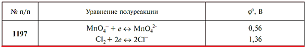 Задача 1197 - По приведенным уравнениям полуреакций и значениям стандартных электродных потенциалов составьте полное ионно-молекулярное уравнение окислительно-восстановительной реакции, самопроизвольно протекающей в редоксэлементе. Рассчитайте ЭДС эл
