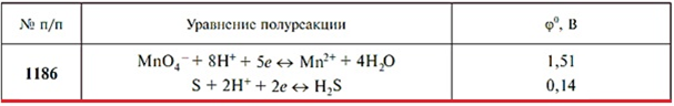 Задача 1186 - По приведенным уравнениям полуреакций и значениям стандартных электродных потенциалов составьте полное ионно-молекулярное уравнение окислительно-восстановительной реакции, самопроизвольно протекающей в редоксэлементе. Рассчитайте ЭДС эл