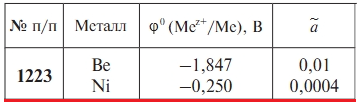 Задача 1223 - Вычислите ЭДС и стандартную энергию Гиббса ΔrG реакции, протекающей в гальваническом элементе, образованном металлами, погруженными в растворы своих солей с известными относительными активностями ионов a. Составьте схему гальванического