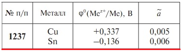 Задача 1237 - Вычислите ЭДС и стандартную энергию Гиббса ΔrG реакции, протекающей в гальваническом элементе, образованном металлами, погруженными в растворы своих солей с известными относительными активностями ионов a. Составьте схему гальванического