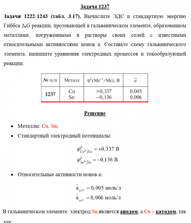 Для студентов по предмету ХимияЗадача 1237 - Вычислите ЭДС и стандартную энергию Гиббса ΔrG реакции, протекающей в гальваническом элементе, образованном металлами, погруженными в раЗадача 1237 - Вычислите ЭДС и стандартную энергию Гиббса ΔrG реакции, протекающей в гальваническом элементе, образованном металлами, погруженными в ра