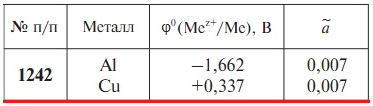 Задачи 1222-1243 (табл. 3.17). Вычислите ЭДС и стандартную энергию Гиббса ΔrG реакции, протекающей в гальваническом элементе, образованном металлами, погруженными в растворы своих солей с известными относительными активностями ионов a. Составьте схему гальванического элемента, напишите уравнения электродных процессов и токообразующей реакции.