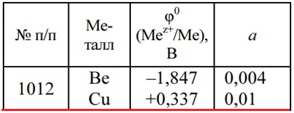 Задача 1012 - вычислите ЭДС и стандартную энергию Гиббса ΔrG0298 реакции, протекающей в гальваническом элементе, который образован металлами, погруженными в растворы собственных солей с известными относительными активностями ионов a. Составьте схему