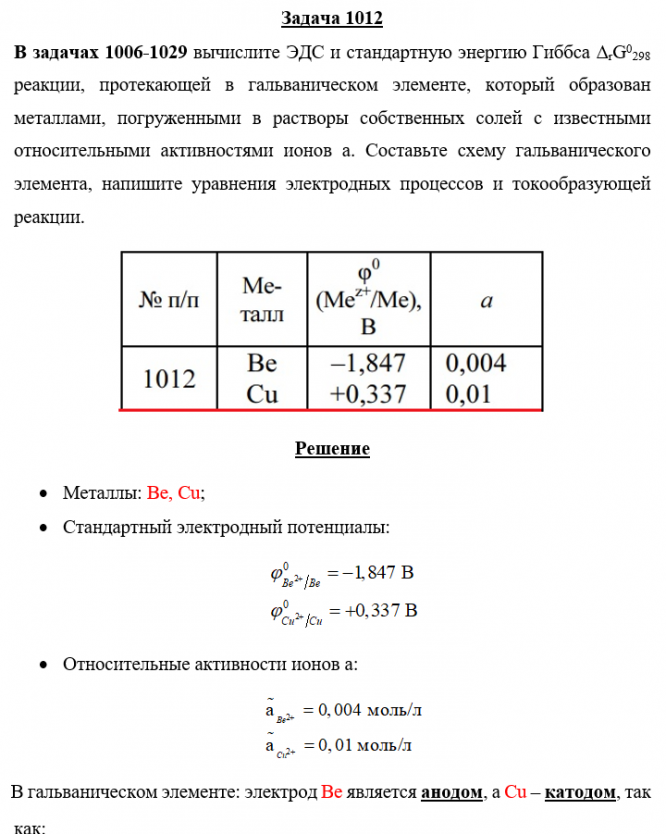Для студентов по предмету ХимияЗадача 1012 - вычислите ЭДС и стандартную энергию Гиббса ΔrG0298 реакции, протекающей в гальваническом элементе, который образован металлами, погруженЗадача 1012 - вычислите ЭДС и стандартную энергию Гиббса ΔrG0298 реакции, протекающей в гальваническом элементе, который образован металлами, погружен