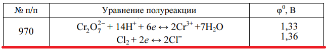 Задача 970 - по приведенным уравнениям полуреакций и значениям стандартных потенциалов составьте полное ионно-молекулярное уравнение окислительно-восстановительной реакции, самопроизвольно протекающей в редоксэлементе. Рассчитайте ЭДС элемента и стан