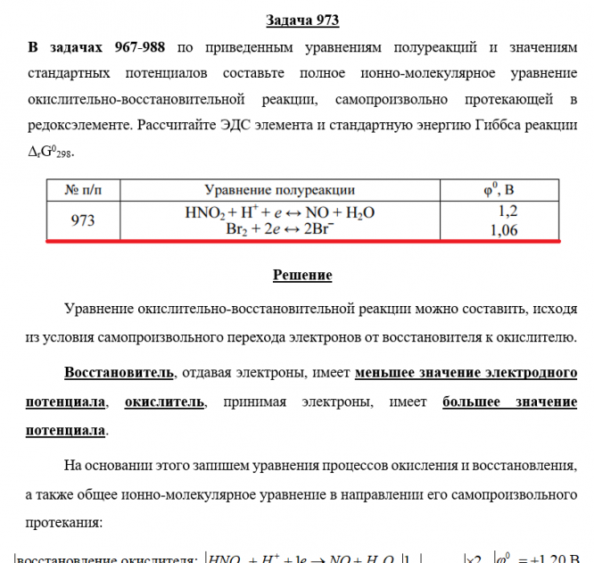 Для студентов по предмету ХимияЗадача 973 - по приведенным уравнениям полуреакций и значениям стандартных потенциалов составьте полное ионно-молекулярное уравнение окислительно-воссЗадача 973 - по приведенным уравнениям полуреакций и значениям стандартных потенциалов составьте полное ионно-молекулярное уравнение окислительно-восс