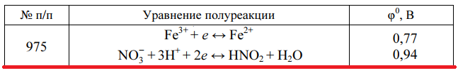 Задача 975 - по приведенным уравнениям полуреакций и значениям стандартных потенциалов составьте полное ионно-молекулярное уравнение окислительно-восстановительной реакции, самопроизвольно протекающей в редоксэлементе. Рассчитайте ЭДС элемента и стан