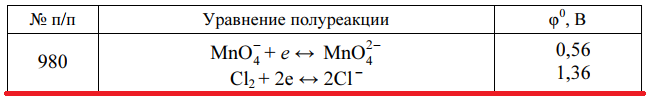 Задача 980 - по приведенным уравнениям полуреакций и значениям стандартных потенциалов составьте полное ионно-молекулярное уравнение окислительно-восстановительной реакции, самопроизвольно протекающей в редоксэлементе. Рассчитайте ЭДС элемента и стан