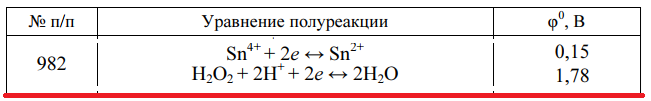 Задача 982 - по приведенным уравнениям полуреакций и значениям стандартных потенциалов составьте полное ионно-молекулярное уравнение окислительно-восстановительной реакции, самопроизвольно протекающей в редоксэлементе. Рассчитайте ЭДС элемента и стан
