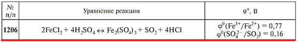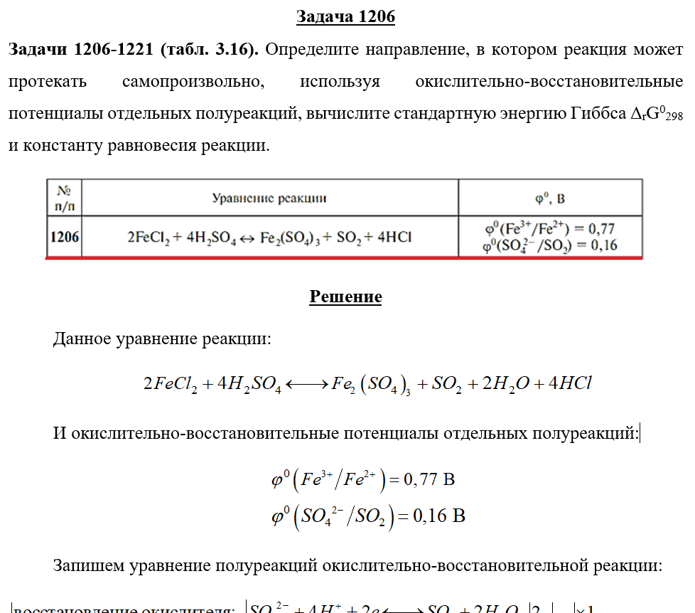 Задачи 1206-1221 (табл. 3.16). Определите направление, в котором реакция может протекать самопроизвольно, используя окислительно-восстановительные потенциалы отдельных полуреаций, вычислите стандартную энергию Гиббса ΔrG0298 и константу равновесия реакции.