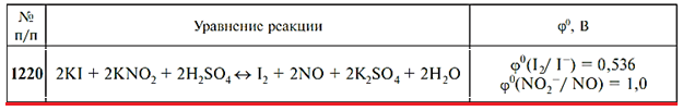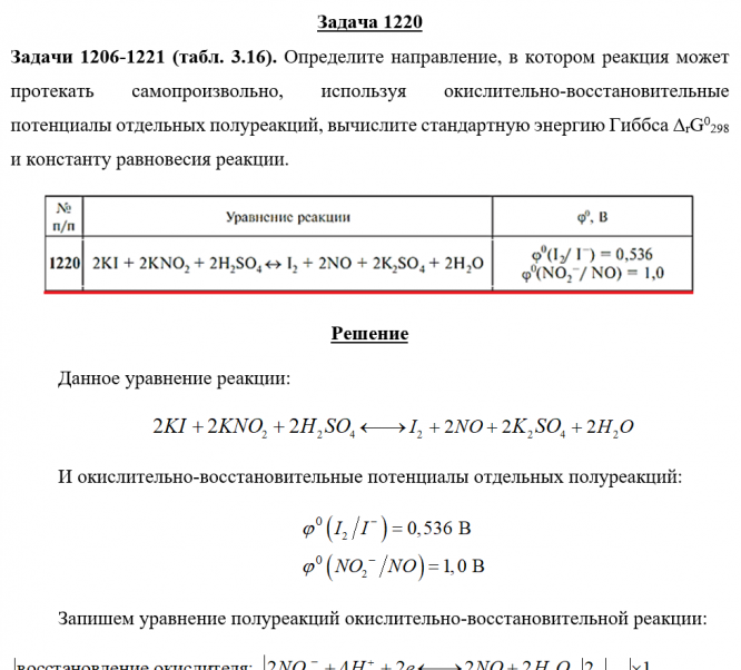 Задачи 1206-1221 (табл. 3.16). Определите направление, в котором реакция может протекать самопроизвольно, используя окислительно-восстановительные потенциалы отдельных полуреаций, вычислите стандартную энергию Гиббса ΔrG0298 и константу равновесия реакции.