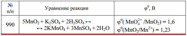 Главная » Учебные материалы » Химия » Решения задач » Несколько классов/семестров » Номер 990 » Задача 990 - определите направление, в котором реакция может протекать самопроизвольно, используя окислительно-восстановительные потенциалы отдельных полуреакций, вычислите стандартную энергию Гиббса ΔrG0298 и константу равновесия реакции.