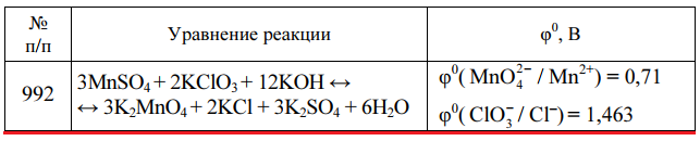 Главная » Учебные материалы » Химия » Решения задач » Несколько классов/семестров » Номер 992 » Задача 992 - определите направление, в котором реакция может протекать самопроизвольно, используя окислительно-восстановительные потенциалы отдельных полуреакций, вычислите стандартную энергию Гиббса ΔrG0298 и константу равновесия реакции.
