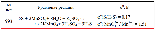 Главная » Учебные материалы » Химия » Решения задач » Несколько классов/семестров » Номер 993 » Задача 993 - определите направление, в котором реакция может протекать самопроизвольно, используя окислительно-восстановительные потенциалы отдельных полуреакций, вычислите стандартную энергию Гиббса ΔrG0298 и константу равновесия реакции.
