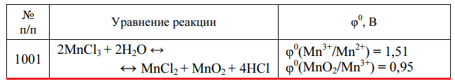 Главная » Учебные материалы » Химия » Решения задач » Несколько классов/семестров » Номер 1001 » Задача 1001 - определите направление, в котором реакция может протекать самопроизвольно, используя окислительно-восстановительные потенциалы отдельных полуреакций, вычислите стандартную энергию Гиббса ΔrG0298 и константу равновесия реакции.
