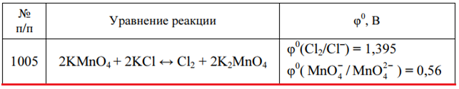Задача 1005 - определите направление, в котором реакция может протекать самопроизвольно, используя окислительно-восстановительные потенциалы отдельных полуреакций, вычислите стандартную энергию Гиббса ΔrG0298 и константу равновесия реакции.