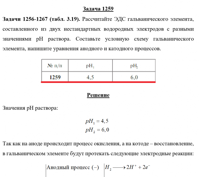 Для студентов по предмету ХимияЗадача 1259 - Рассчитайте ЭДС гальванического элемента, составленного из двух нестандартных водородных электродов с разными значениями рН раствора. СоЗадача 1259 - Рассчитайте ЭДС гальванического элемента, составленного из двух нестандартных водородных электродов с разными значениями рН раствора. Со