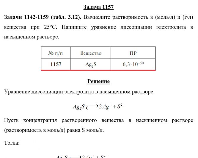 Главная » Учебные материалы » Химия » Решения задач » Несколько классов/семестров » Номер 1157 » Задача 1157 - Вычислите растворимость в (моль/л) и (г/л) вещества при 25°С. Напишите уравнение диссоциации электролита в насыщенном растворе.