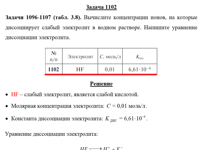 Задачи 1096-1107 (табл. 3.8). Вычислите концентрации ионов, на которые диссоциирует слабый электролит в водном растворе. Напишите уравнение диссоциации электролита. .