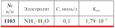 Задача 1103 - Вычислите концентрации ионов, на которые диссоциирует слабый электролит в водном растворе. Напишите уравнение диссоциации электролита.