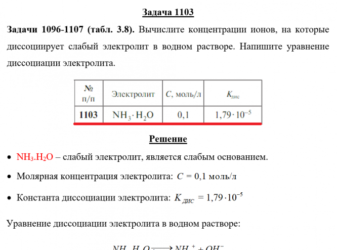 Главная » Учебные материалы » Химия » Решения задач » Несколько классов/семестров » Номер 1103 » Задача 1103 - Вычислите концентрации ионов, на которые диссоциирует слабый электролит в водном растворе. Напишите уравнение диссоциации электролита.