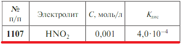 Задача 1107 - Вычислите концентрации ионов, на которые диссоциирует слабый электролит в водном растворе. Напишите уравнение диссоциации электролита.