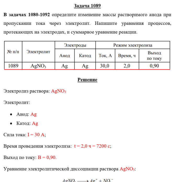 Для студентов по предмету ХимияЗадача 1089 - определите изменение массы растворимого анода при пропускании тока через электролит. Напишите уравнения процессов, протекающих на электрЗадача 1089 - определите изменение массы растворимого анода при пропускании тока через электролит. Напишите уравнения процессов, протекающих на электр