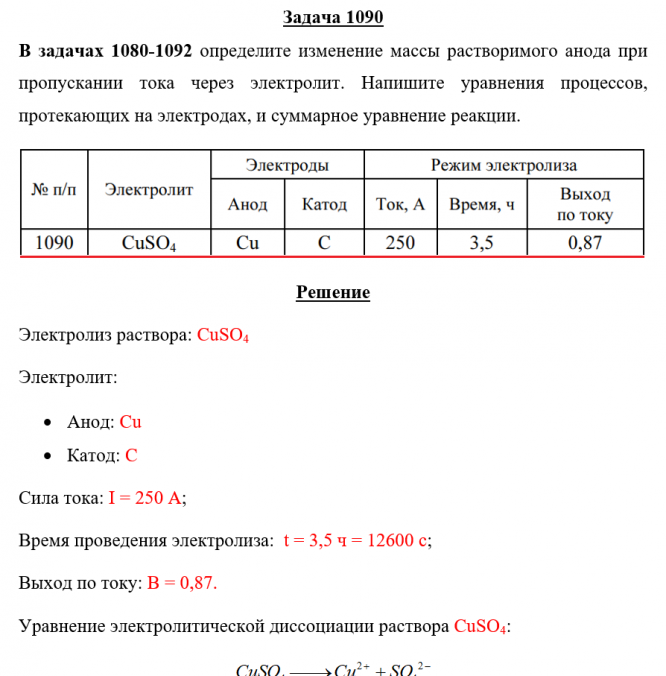 Для студентов по предмету ХимияЗадача 1090 - определите изменение массы растворимого анода при пропускании тока через электролит. Напишите уравнения процессов, протекающих на электрЗадача 1090 - определите изменение массы растворимого анода при пропускании тока через электролит. Напишите уравнения процессов, протекающих на электр