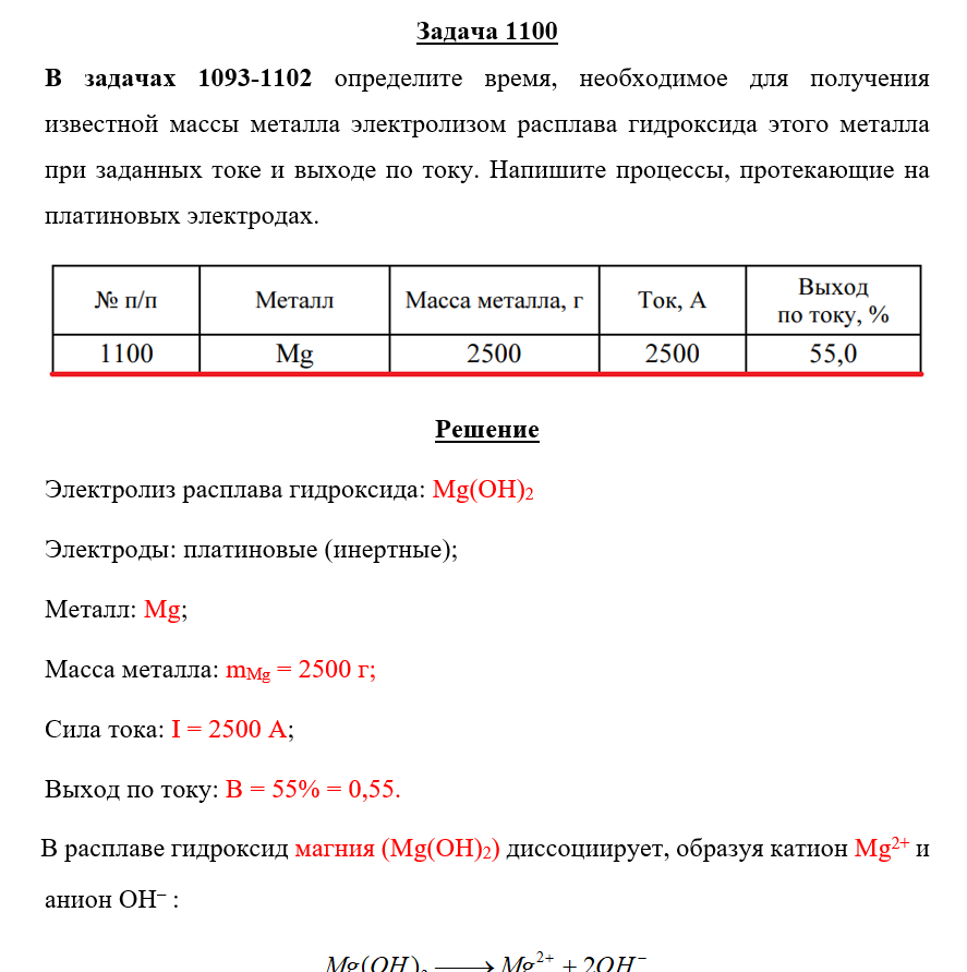Для студентов по предмету ХимияЗадача 1100 - определите время, необходимое для получения известной массы металла электролизом расплава гидроксида этого металла при заданных токе и вЗадача 1100 - определите время, необходимое для получения известной массы металла электролизом расплава гидроксида этого металла при заданных токе и в